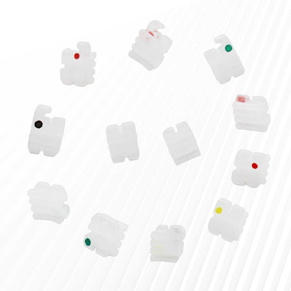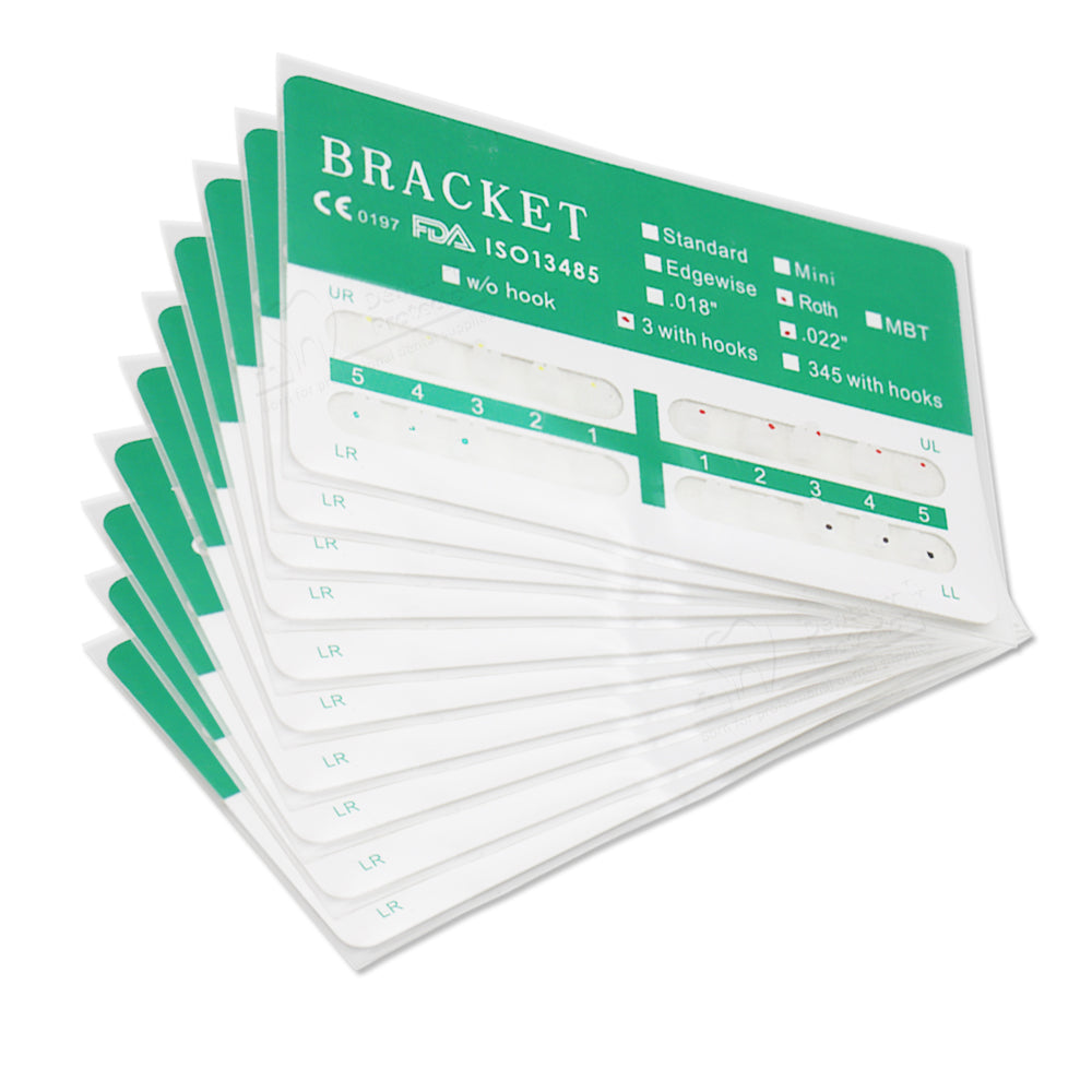 GOB-R0223 10 Packs Dental Orthodontic Brackets Ceramic Braces Bracket Braces Dental Roth Bracket 022"/018" Slot 3 with Hook